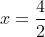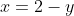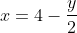 \(2x + y = 4 \, \Leftrightarrow \, 2x = 4 - y \, \Leftrightarrow \, x = 2 - \frac y2 \)