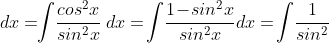 | ∫ (cot x)2 dx = | A. cotx − x + C |