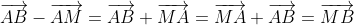 A. \(\overrightarrow{AB}-\overrightarrow{AM}=\overrightarrow{MB}\) |